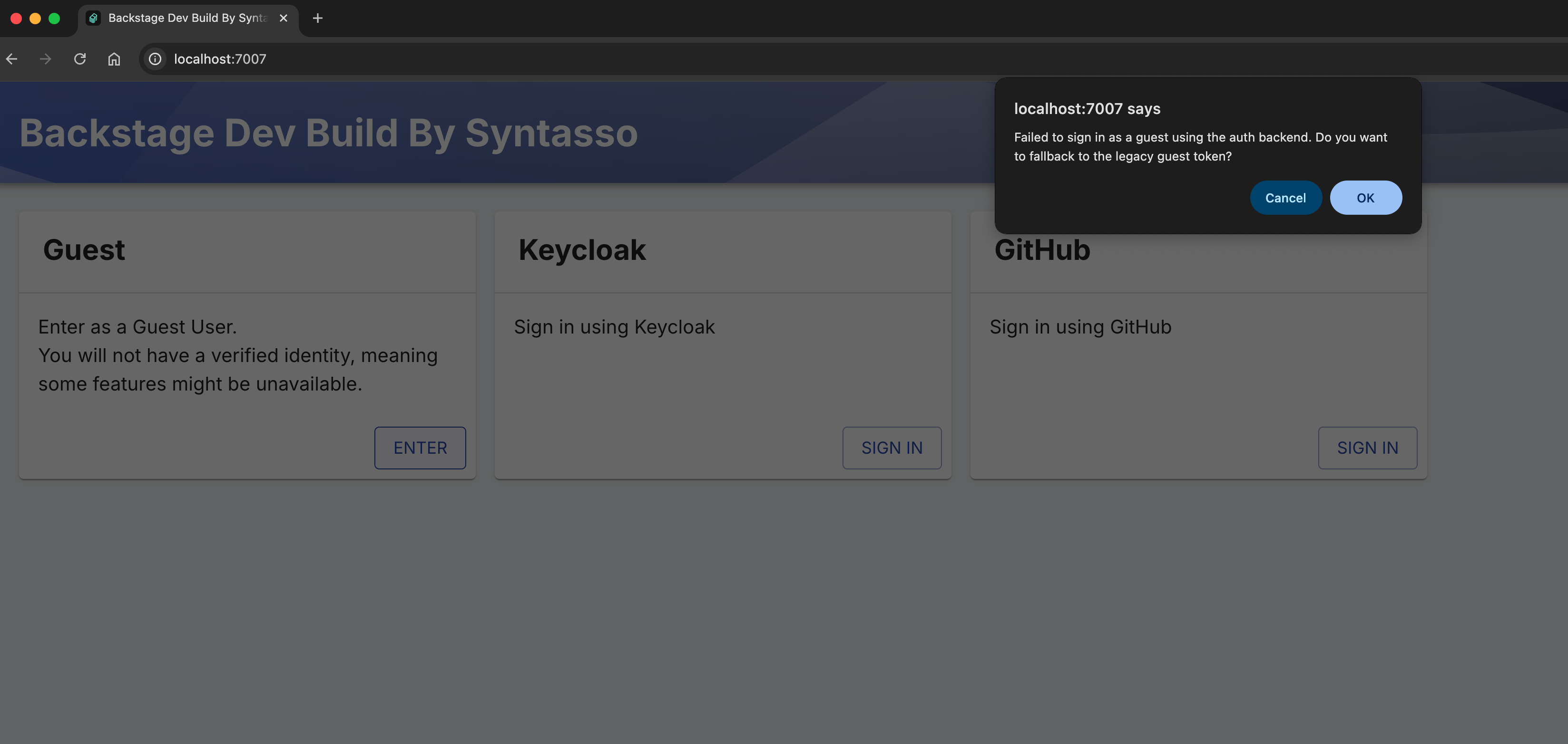 . You can login using the legacy guest token method by click ok